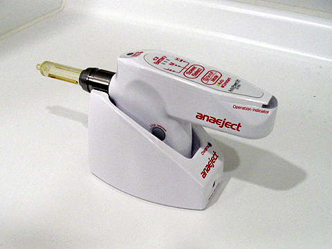 できるだけ痛みのない麻酔注射をするために麻酔液を体温と同じ温度に温めています。 注射針は市販させているもので最も細いものを使用し、新型電動注射器で麻酔を行って無痛治療を目指しております。 |